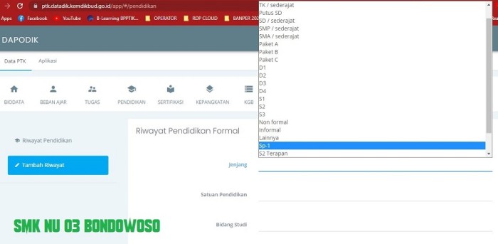 riwayat pendidikan, bisa mengikuti langkah-langkah singkat dibawah !