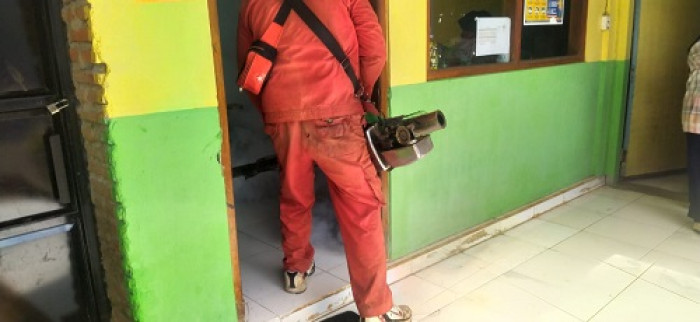membunuh nyamuk. Fogging di SMK NU 03 Bondowoso di