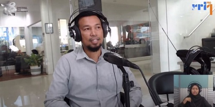 presenter Gea Debora, S.S, M.Li, mengikuti dialog di RRI Jember. Dialog ini
